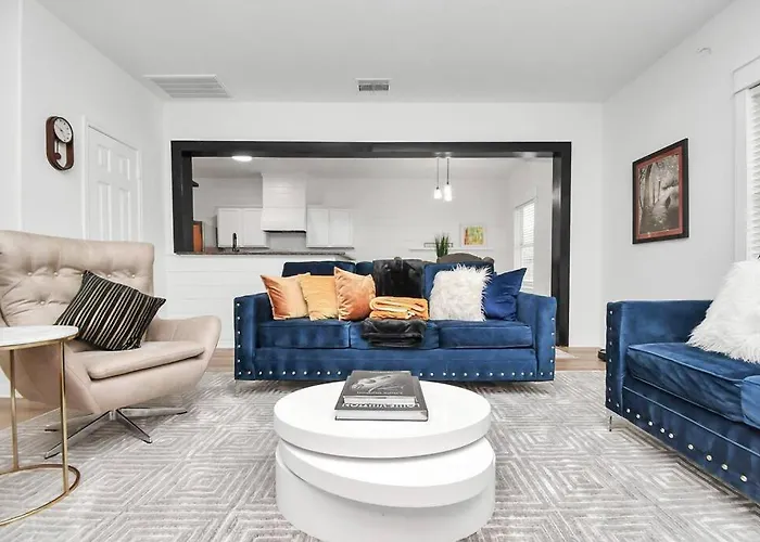 10Min From Fort Bend Epicenter Stylish 4 Bedroom Home bietet Gästen eine stilvolle und komfortable Rückzugsstätte, die ideal für Familien oder Gruppen ist. Mit einer modernen Ausstattung und einem durchdachten Design sorgt dieses Zuhause für einen unvergesslichen Aufenthalt.